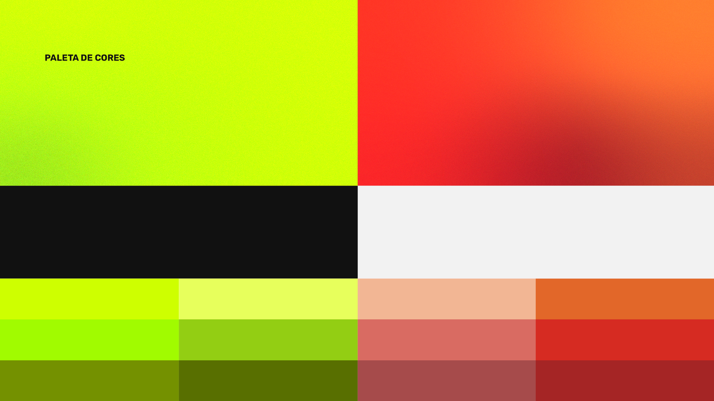 The color palette features vibrant and radiant tones, including fluorescent lime green, inspired by tennis balls, and orange and red tones, evoking the look of clay courts. These colors are used in contrast with black and white, ensuring visual impact, legibility, and flexibility across various applications.